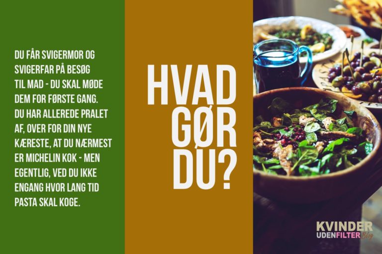 Du får svigermor og svigerfar på besøg til mad – du skal møde dem for første gang. Du har allerede pralet af, overfor din nye kæreste, at du nærmest er Michelin kok – men egentlig, ved du ikke engang hvor lang tid pasta skal koge.
